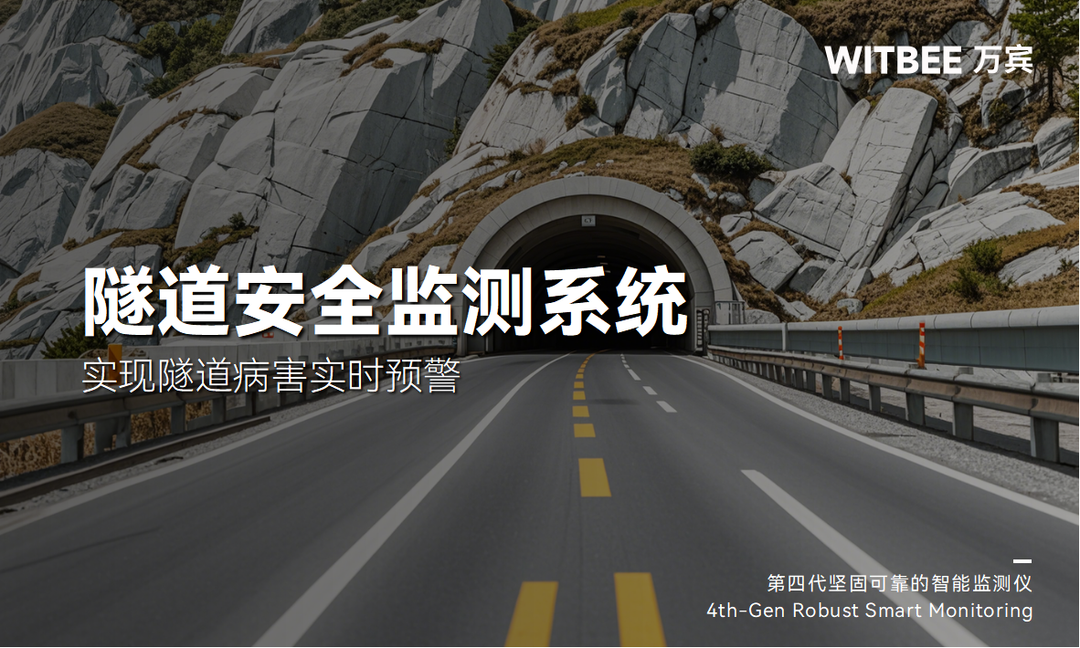 WITBEE?萬賓科技?隧道安全監測系統集傳感器監測、數據傳輸、數據分析與處理、預警與聯動于一體,通過智能結構診斷器、地埋式積水監測儀等先進設備,實時監測隧道位移、沉降、積水等病害,運用大數據與AI算法智能分析,實現病害實時預警。